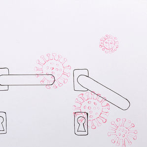 A série PictoCoV é composta por 30 desenhos em nanquim, realizados em março de 2020. Pictogramas desenvolvidos a partir de elementos visuais que aludem a deslocamento, ritos sociais e elementos associados às mudanças ocasionadas pela pandemia de Covid 19.